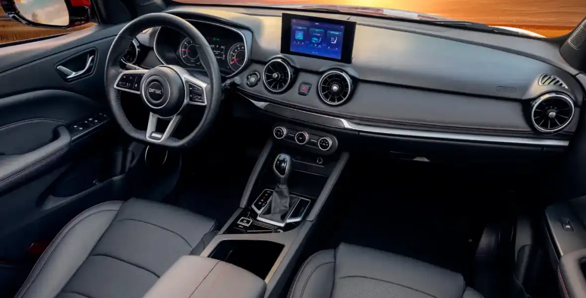 Комплектация у DFSK 500 всего одна, зато, как утверждают в пресс-службе DONGFENG, самая что не есть оптимальная. Обращает на себя внимание темная обивка потолка, чего в данном сегменте днем с огнем не сыщешь, перфорированная эко-кожа в обивке сидений, сенсорный экран мультимедиа размером 7 дюймов, в который интегрирован навигатор, ABS, две подушки безопасности, система помощи при старте в гору и спуске с горы. Передние кресла с подогревом, однако все регулировки — механические. Руль по вылету не регулируется. На заднем диване предусмотрен центральный подлокотник с подстаканниками — опять же, далеко не у всех в сегменте есть такое предложение.