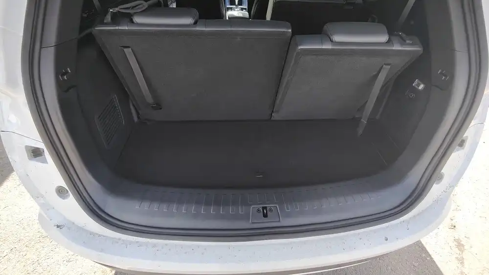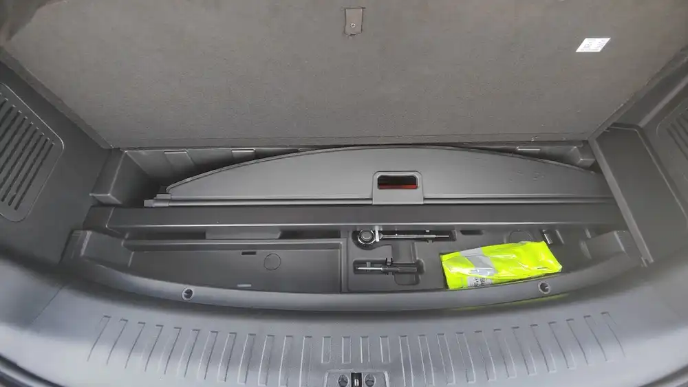 При сложенных сиденьях третьего ряда багажный отсек становится весьма вместительным – на глаз не менее полкуба. Прикрыть его можно рулонной шторкой, которая до сих пор лежала в подполе позади спинок кресел третьего ряда.