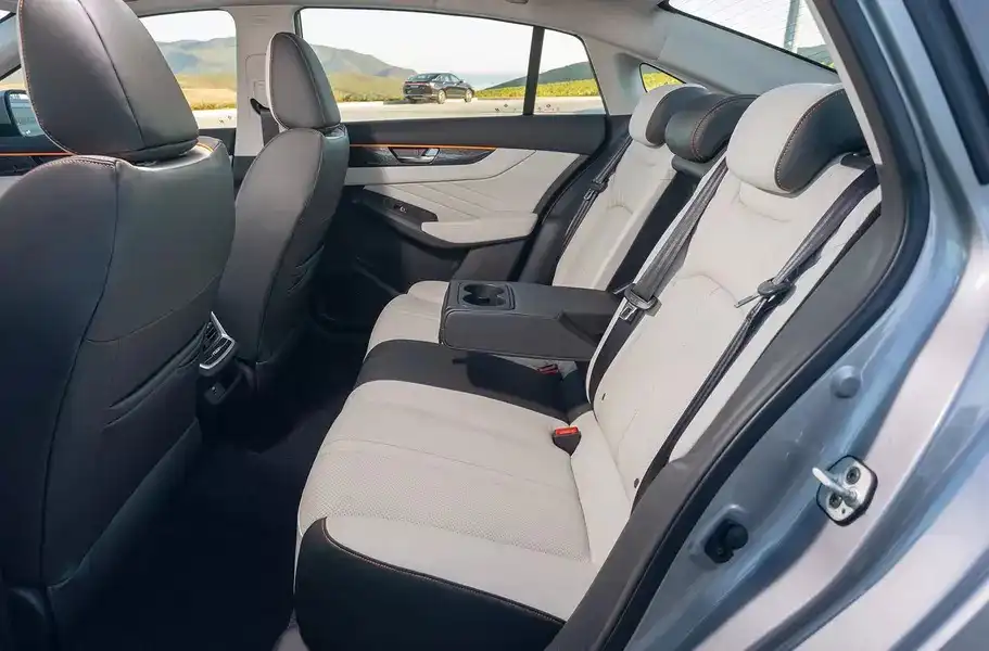 А лежит в топовом Shine Max немало: оба передних кресла оснащены электроприводом и обогревом, а водительское (и только оно) вдобавок — ещё и функциями вентиляции и массажа. Есть матричные диодные фары, беспроводная зарядка для телефона, камеры кругового обзора, продвинутая акустика с объемным звучанием, панорамная крыша, адаптивный круиз-контроль, системы автоторможения и удержания в полосе, мониторинг усталости водителя, бесключевой доступ и так далее. Работает весь этот набор, по большей части, неплохо — но главное, что у седана всё в порядке с базовыми ценностями: нормальная человеческая посадка за рулем, просторный второй ряд и довольно вместительный багажник. Жаль только, что спинка второго ряда не разделена по частям и складывается исключительно целиком.