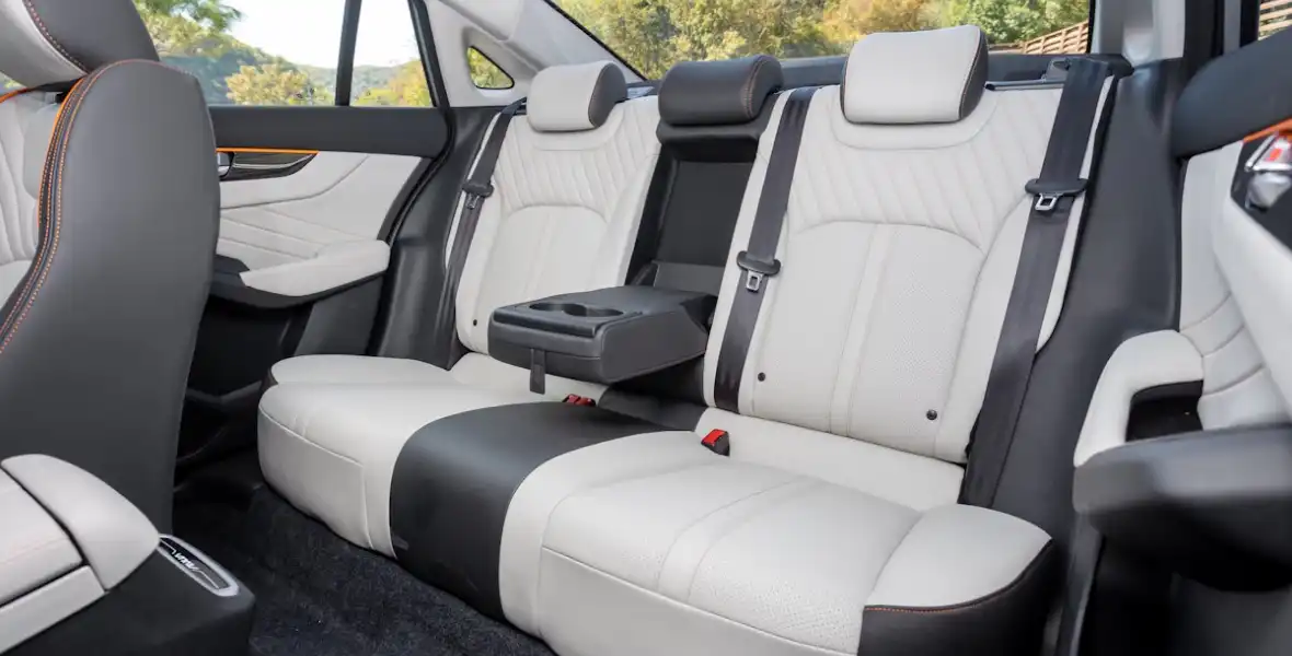 А как себя чувствуют пассажиры второго ряда? Неплохо, хотя спинка дивана не регулируется по углу наклона, а обогрева нет. Зато сиденья во втором ряду удобные и просторные, места над головой и для ног достаточно. Есть откидной подлокотник с подстаканниками и ниши для мобильных телефонов, а также USB-порты и свой воздуховод.