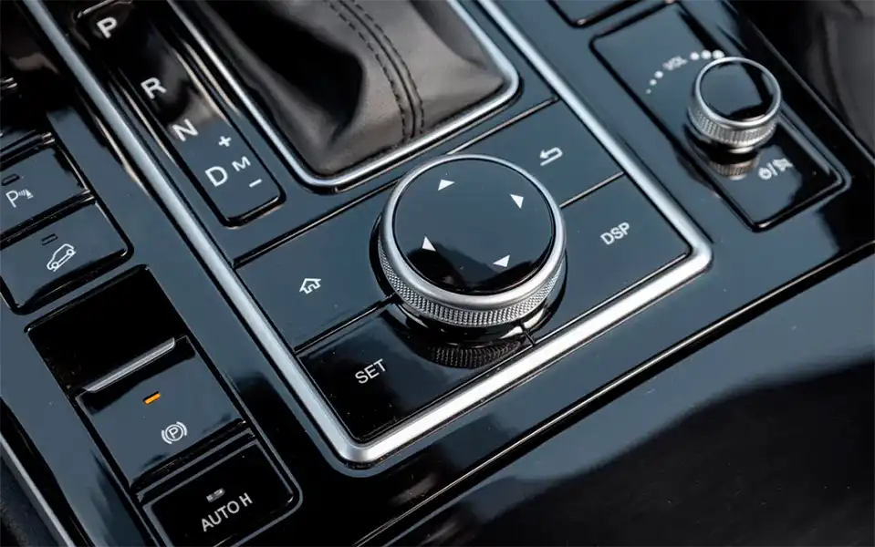 За рулем гораздо просторнее, высоко сидишь, далеко глядишь. Климат-контроль раздельный, и кнопки подогрева/вентиляции кресел вынесены на его пульт. Громкостью заведует кругляшок, ездовыми режимами — физическая кнопка. А возле рычага КП — ой, глазам не верю! — классная шайба-джойстик, с образцовой точностью управляющая главным меню. Крутишь-листаешь, не отвлекаясь от дороги, рука помнит.