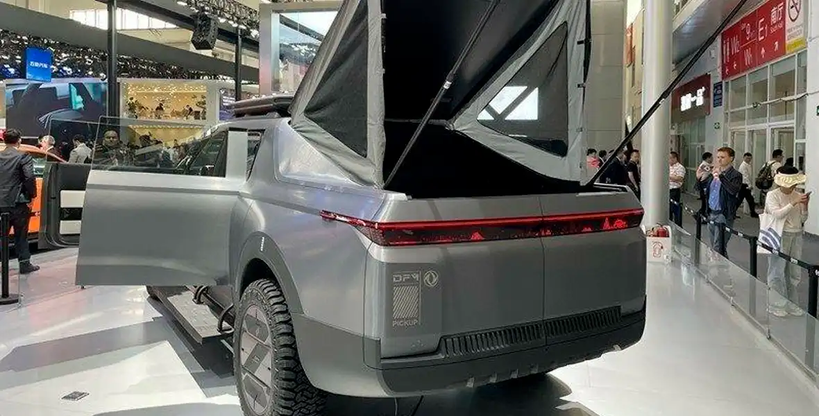 Новинку назвали на удивление безлико: просто DFM Pickup. Даже как-то обидно за автомобиль. Зато на демонстрационном пикапе сразу установлен раскладной тент, превращающий кузов в жилой модуль, а машину — в дом на колесах. Подобные конструкции силами тюнинговых ателье выпускаются и для Cybertruck, но стоят они как минимум пару десятков тысяч долларов.